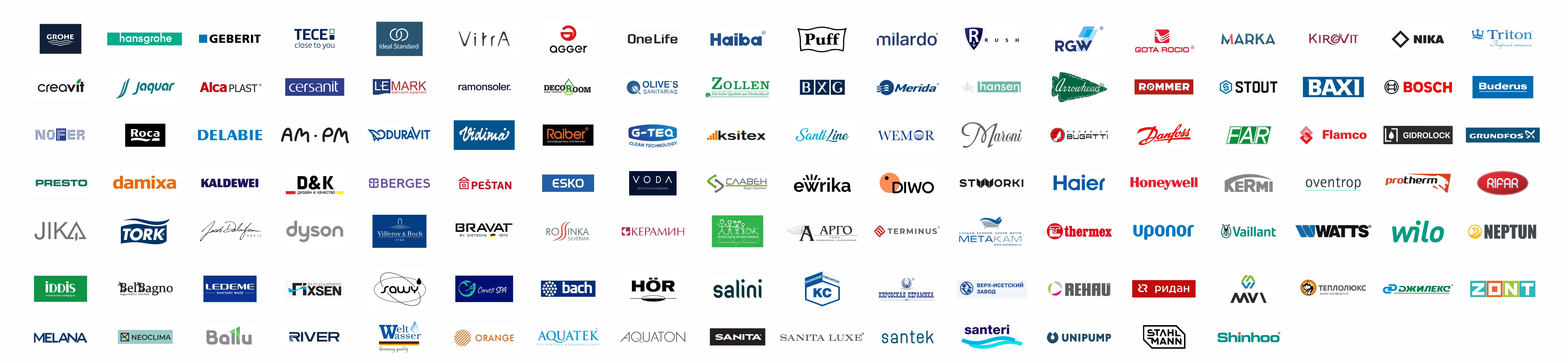Мы так же являемся официальными партнерами более чем 100 брендов белой и инженерной сантехники. Поэтому сможем комплексное предложение для любого проекта.